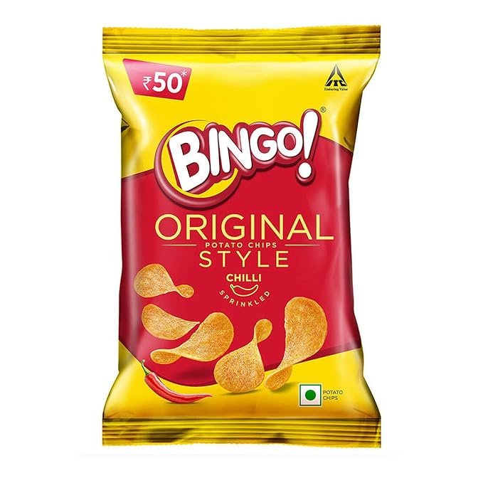 - Looking for a way to shake things up? Just pop open a pack of Bingo! Original Style Chilli Sprinkled potato chips!;Savour these spicy chips which come in the form of flat cut wafers, the original style of potato chips.