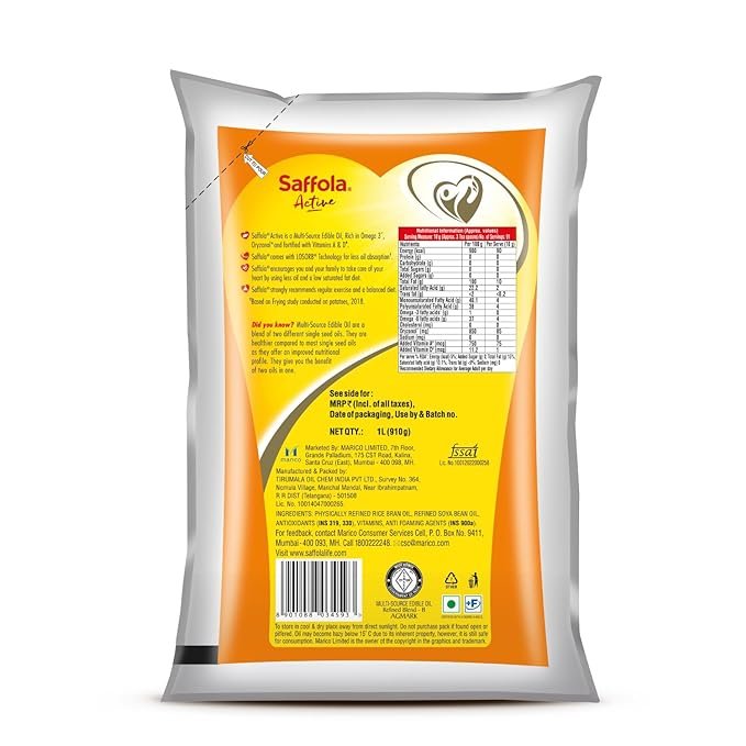 - Saffola Active multisource edible oil is high in Omega-3, alpha linolenic acid, which contributes in maintaining blood cholesterol levels